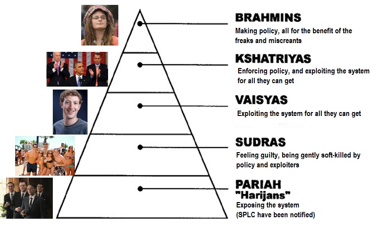 There is a peculiar comedy to the enemy's self-destruction, which somehow manages to sit aloft with his abominable evil in the face of which we are correctly nauseated. The ever-increasing entropy of our society makes for ever-more inane contradictions, self-parodies, and farcical stereotypes. Why might these bring us joy? Because they are like the scent of death from the opposing side of the battlefield, and now we know the torturers of man gasp their last. The decline carries us all with it, but our enemy's death is theirs and theirs alone. To this we are only interested observers captivated by a spectacle, a pantomime. It is this which might bring us crude joy in the closing edge of the Iron Age.